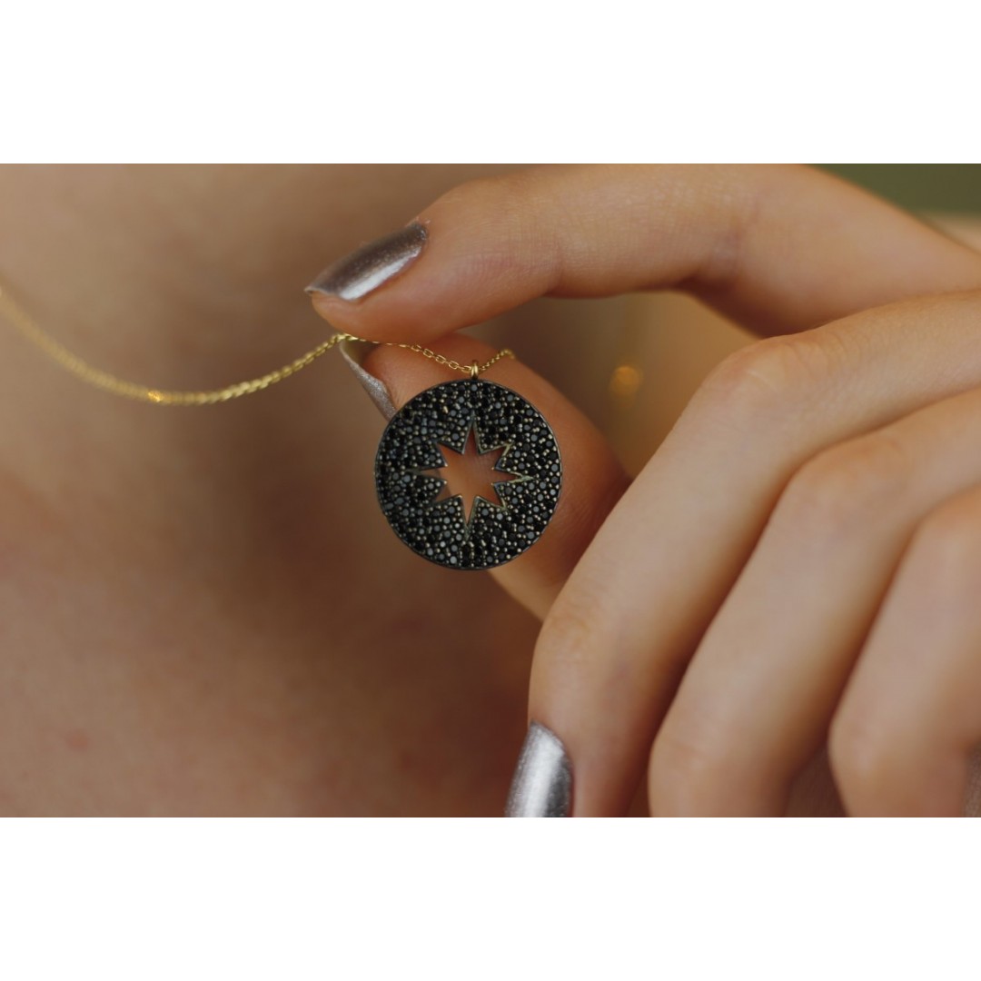 Siyah Taşlı Yıldız Figürlü Kolye ZN00542