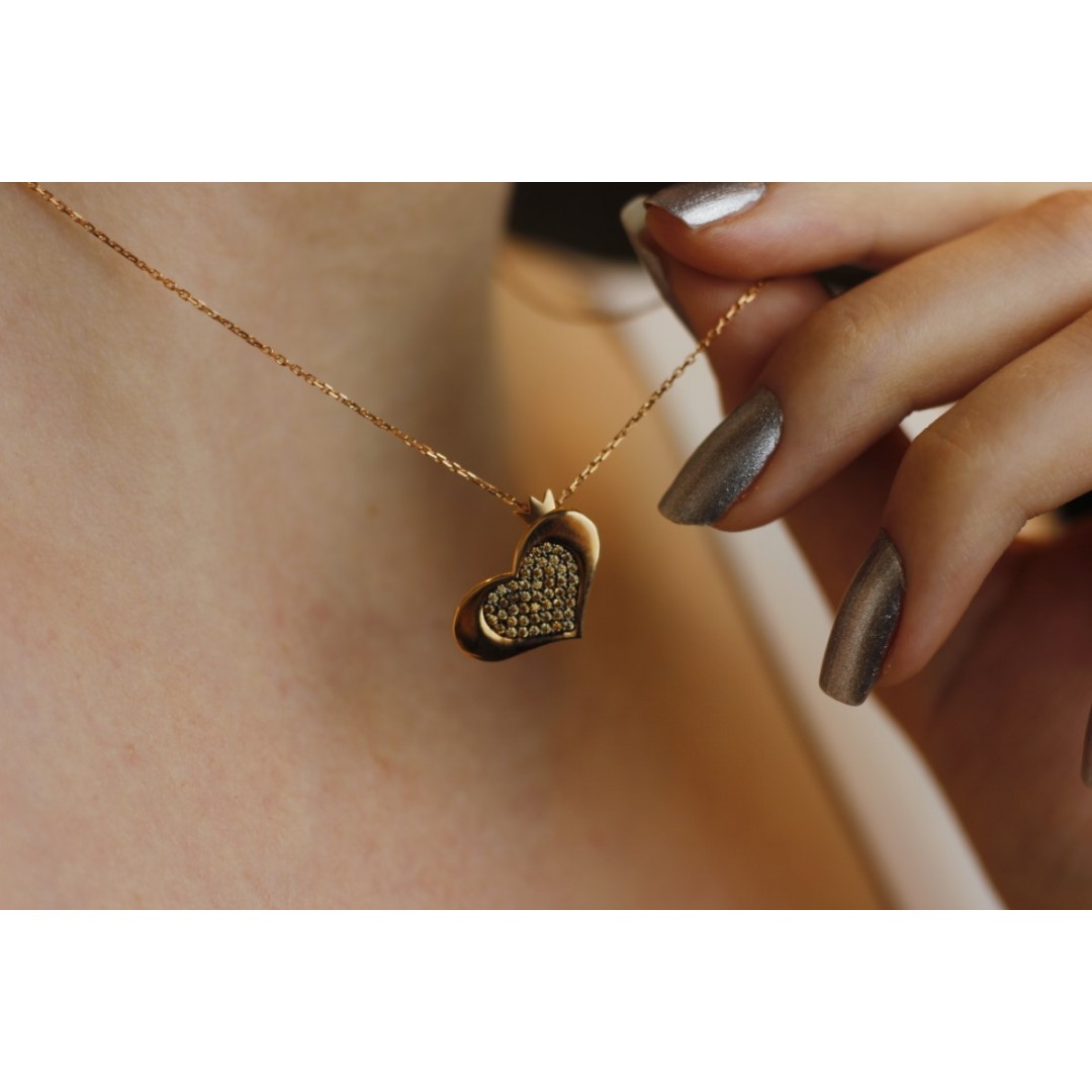 Taşlı Rose Renkli Kalp Kolye ZN01853
